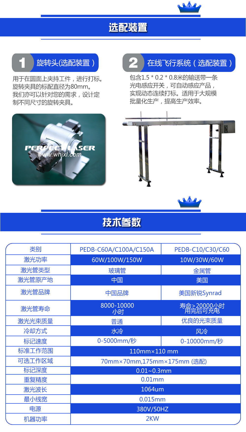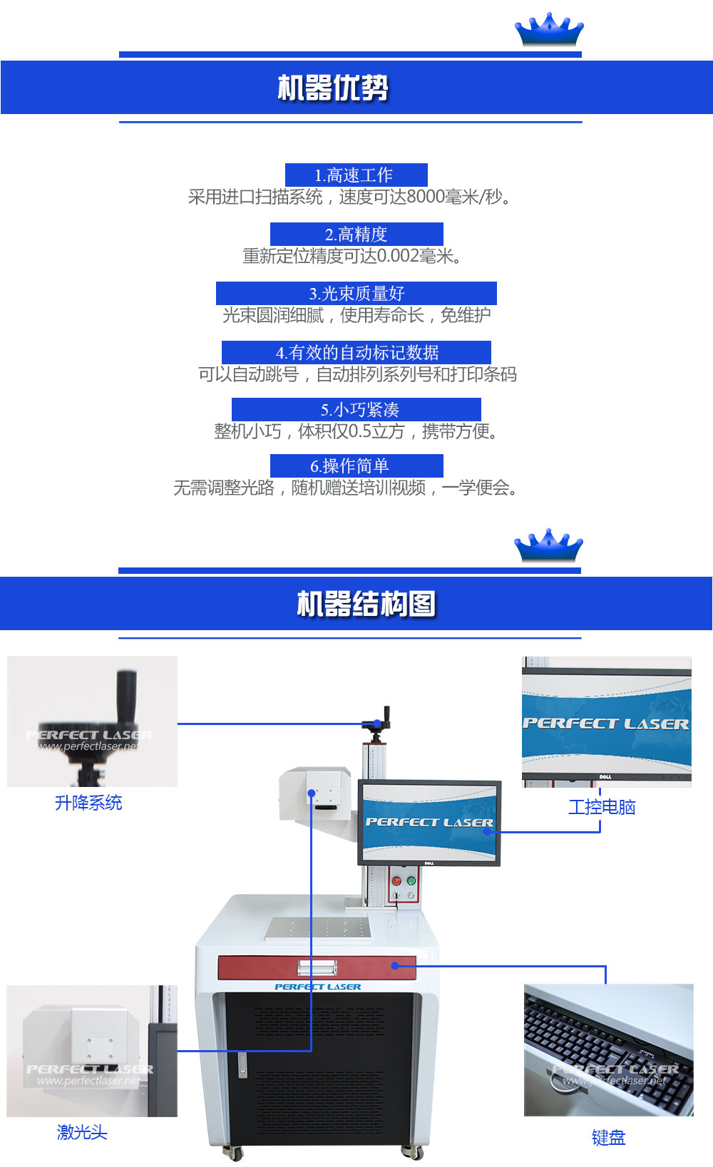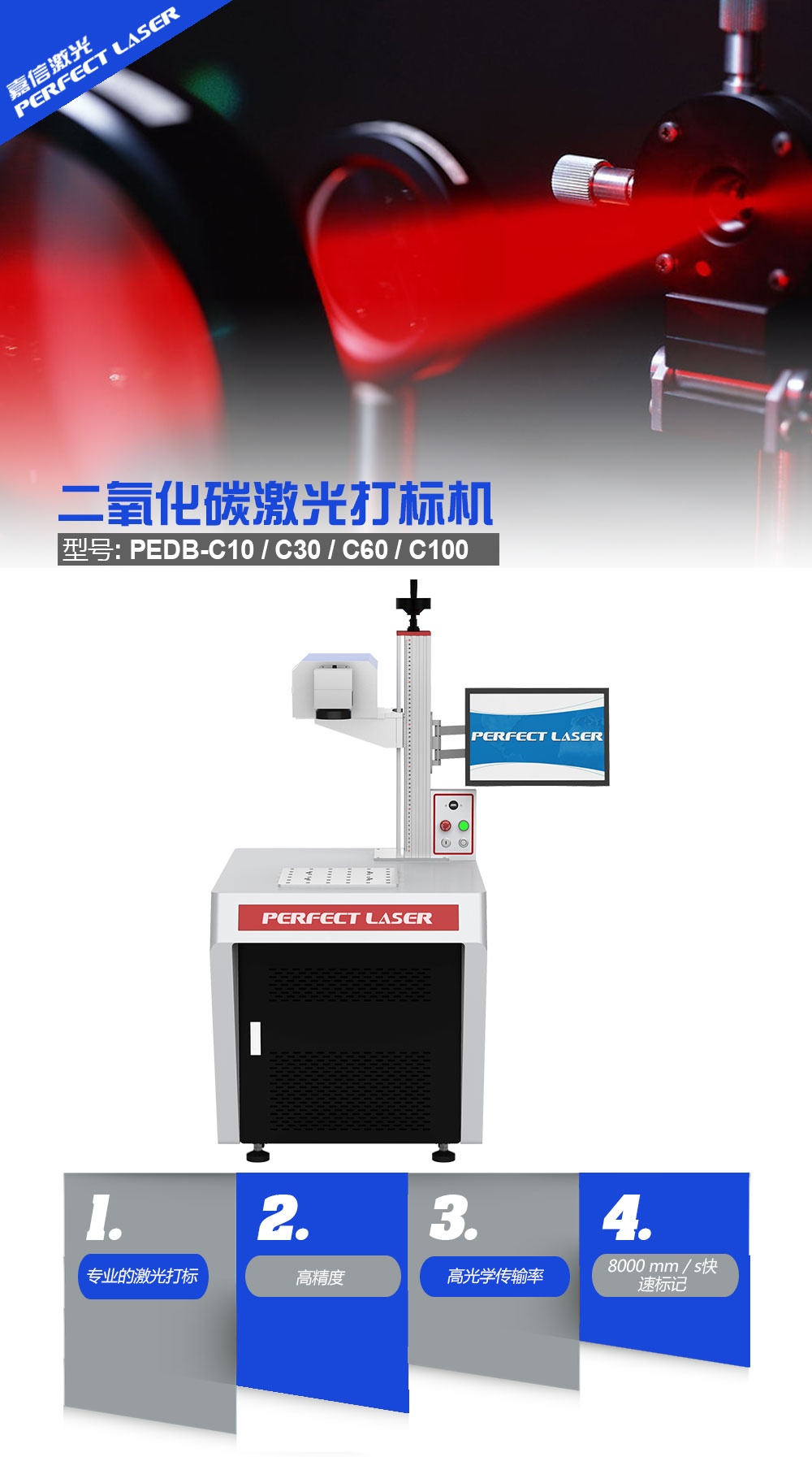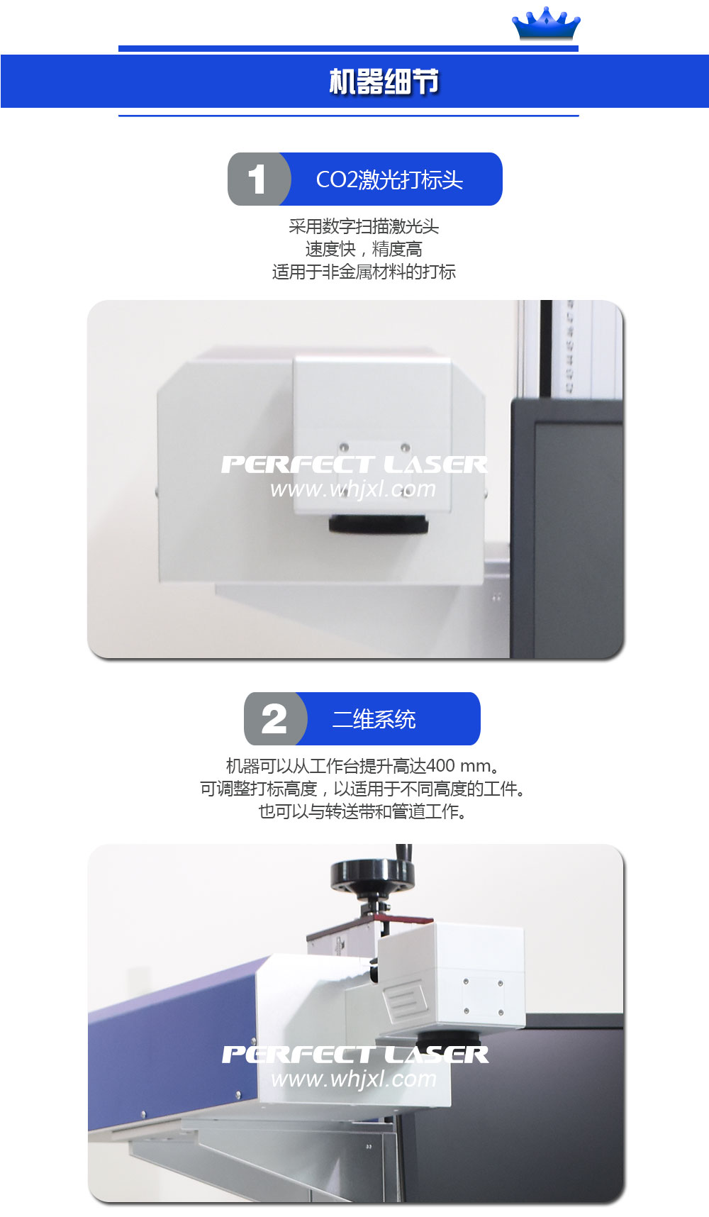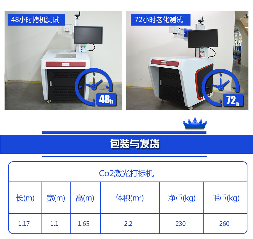 1. CO2激光打標機采用美國原裝射頻金屬激光管作為激光源,壽命可達無維護30000〜 40000小時;