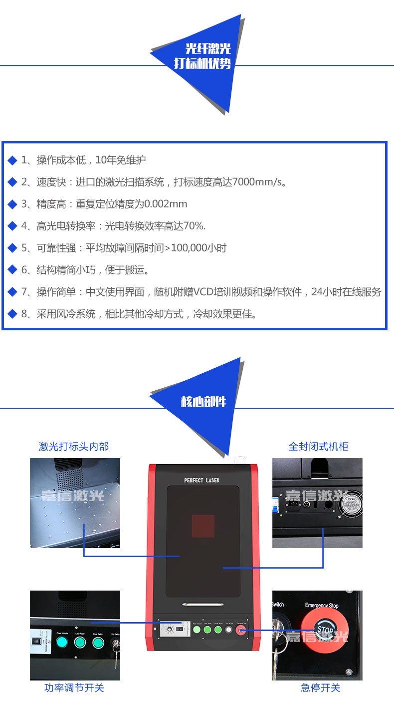 3.速度快:采(cǎi)用進口激光掃描係統,使封閉的光纖激光打標機的打標速度可達7000毫米/秒;