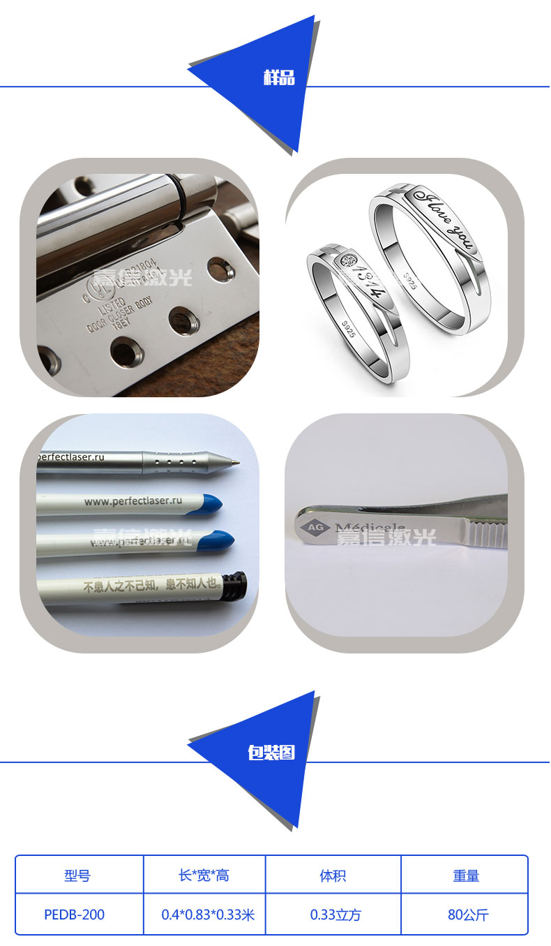 2.主要標記領域為光滑(huá)度和精細度要求較高行業,如電子產品,金屬製品,鍾表,珠寶,IC,塑料紐扣和其它圖形表麵(miàn);