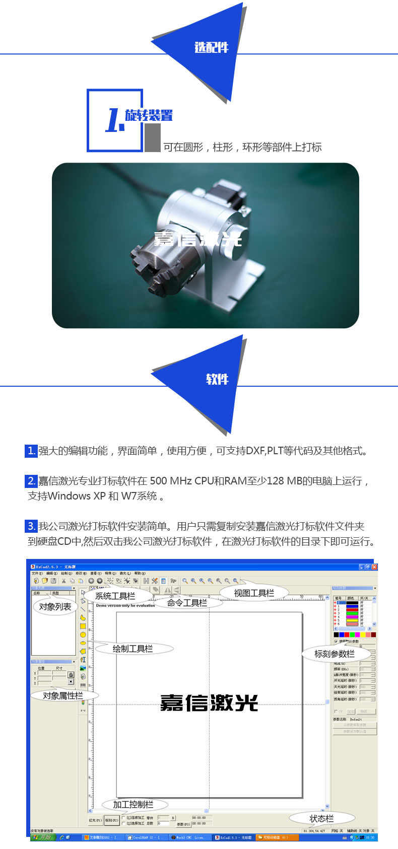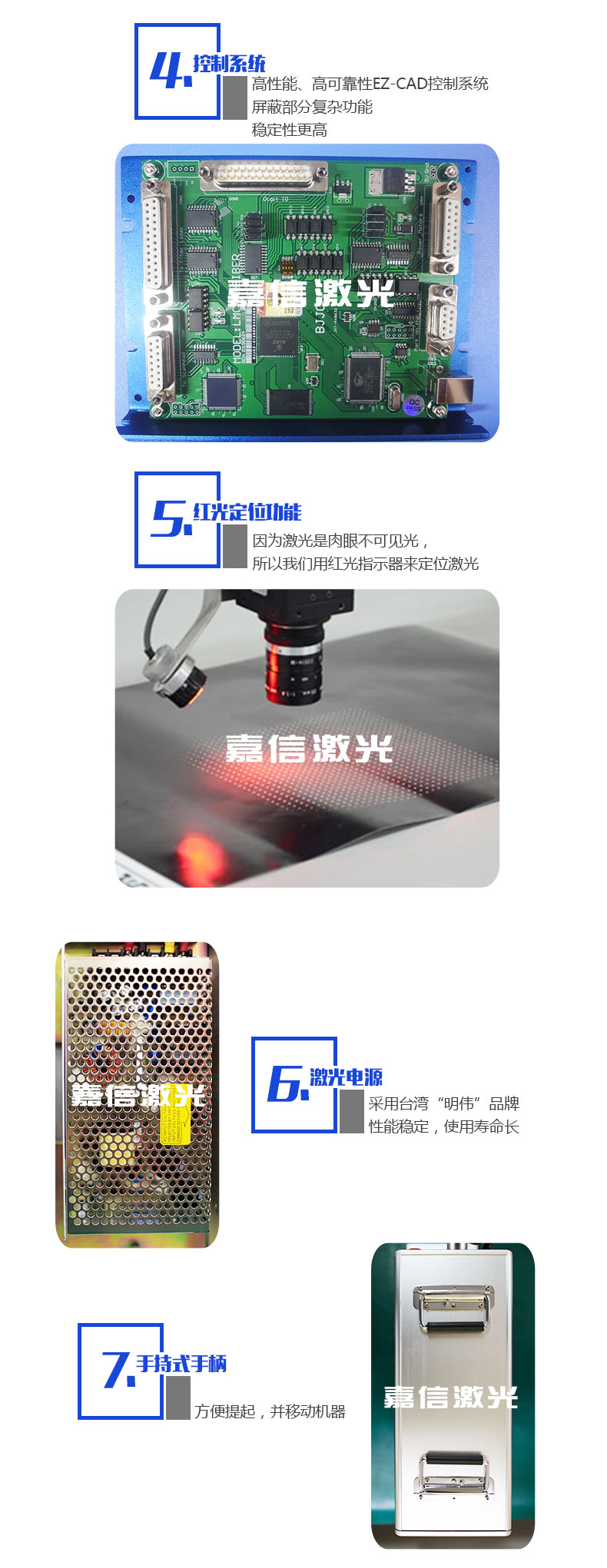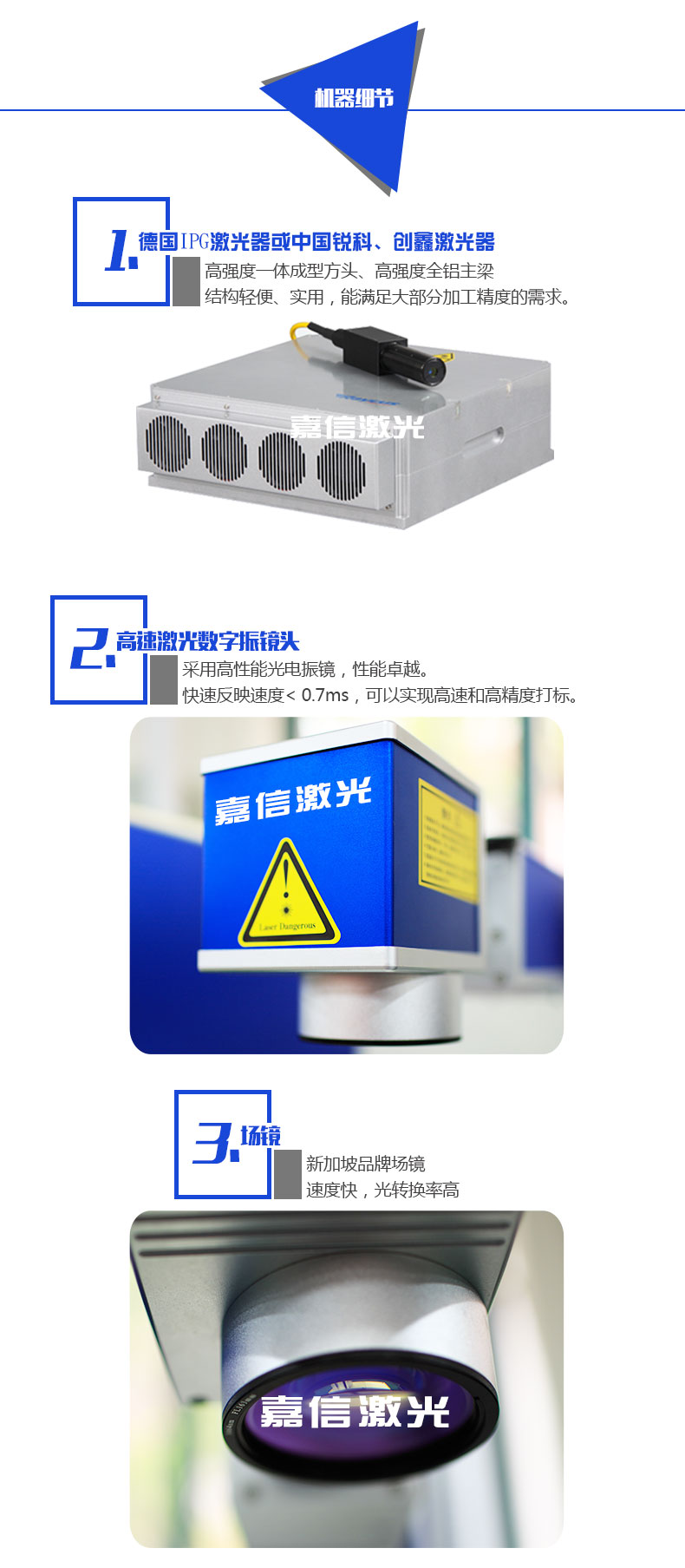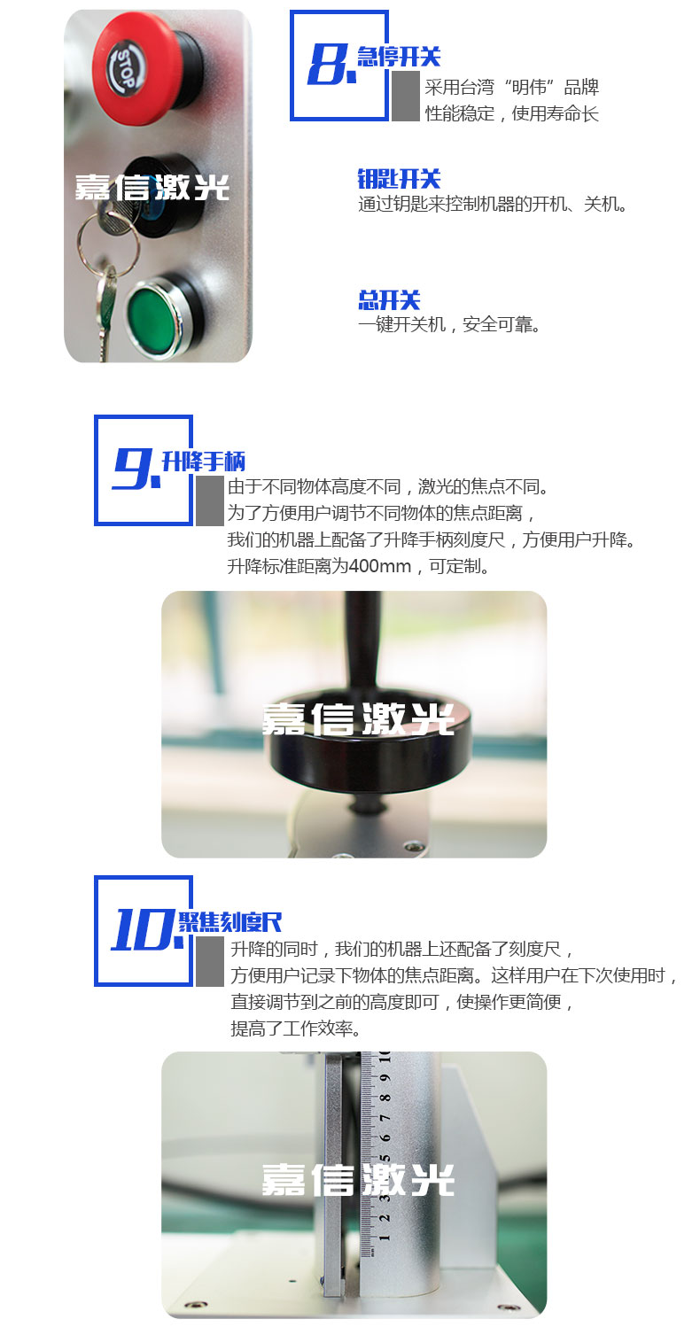 2. 可(kě)選配多種功率激光光源:無論您屬於什麽行業,無論您使用什麽材料,該(gāi)款台式(shì)光纖激光打標機都可以為您個性定製適合的(de)打標機;