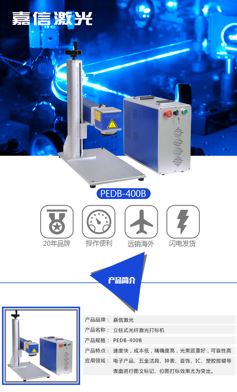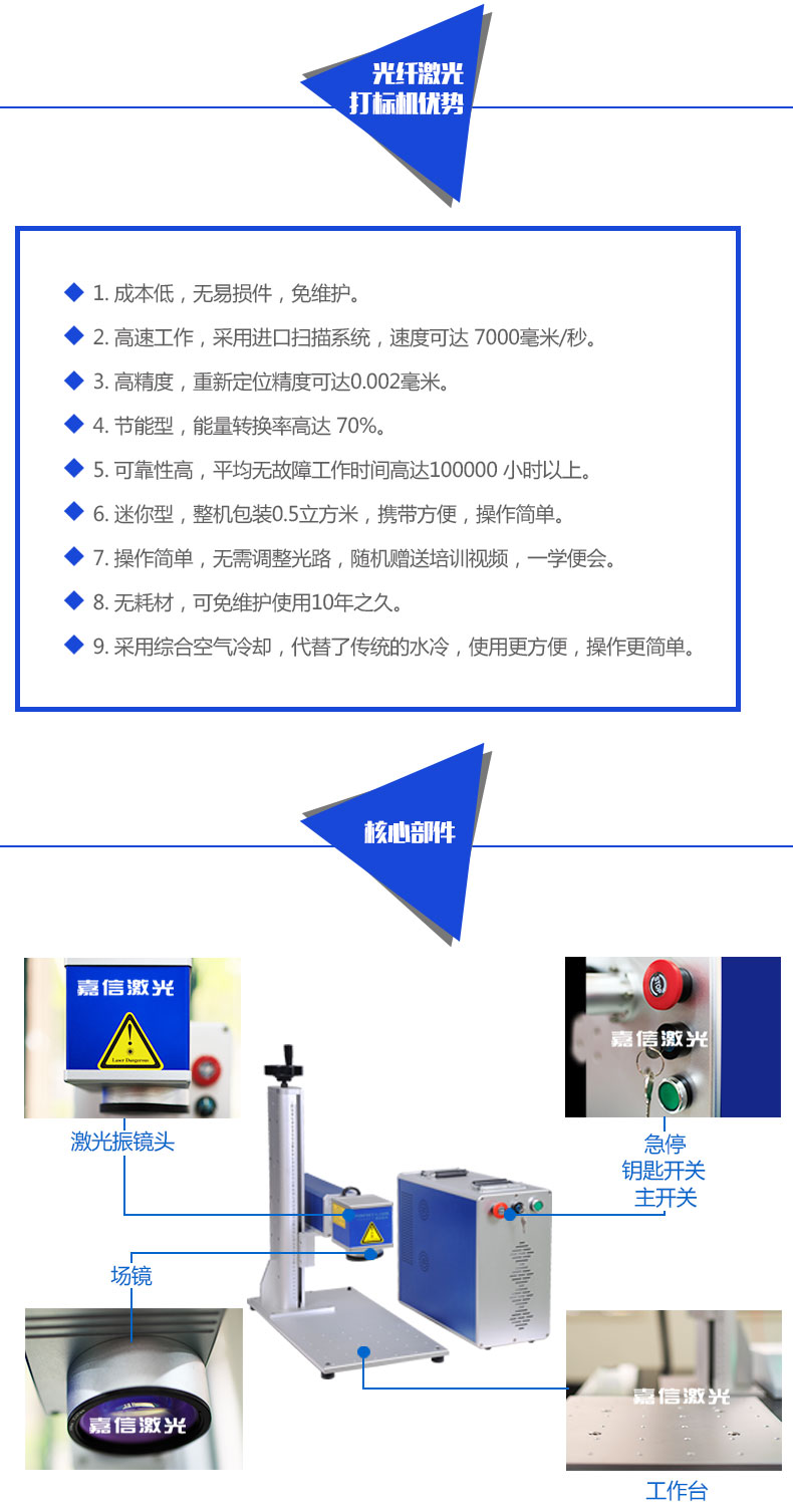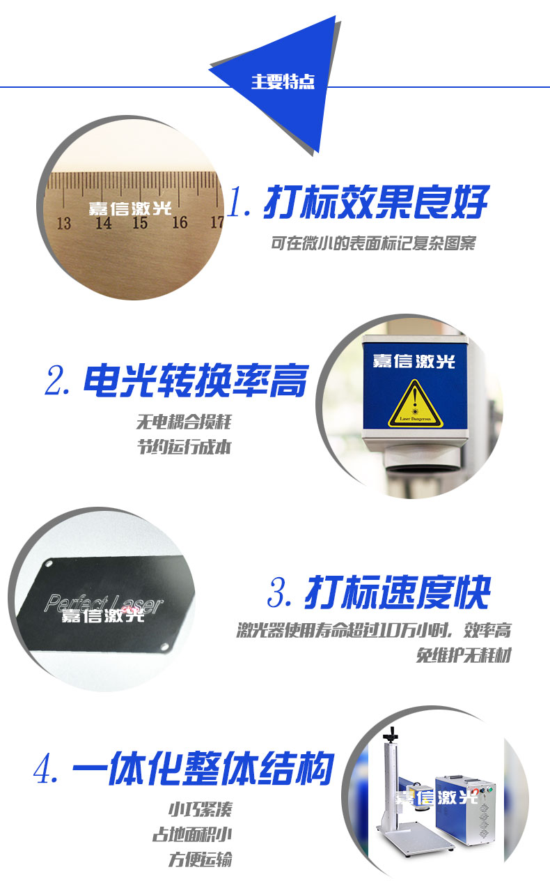 4. 超長使用壽命:台式光纖激光(guāng)打標機可在惡劣(liè)工作環境下連續工作,激光器10萬小時免維護;