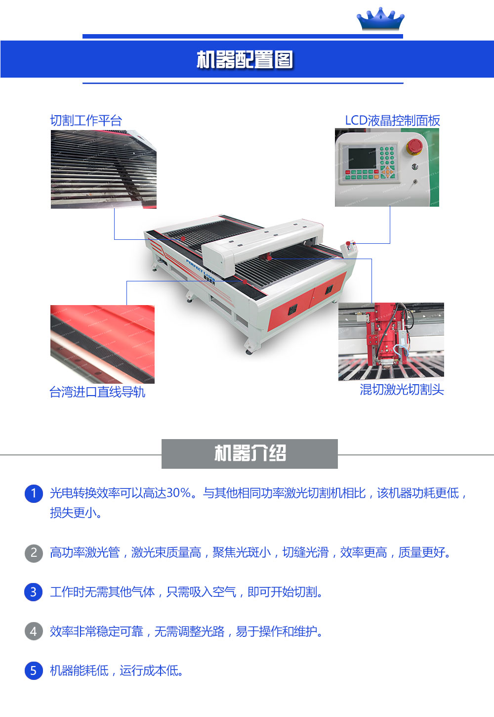 1.適(shì)合材料:金屬非金屬混合切(qiē)割機適合加工不鏽鋼、碳鋼、鋼板、鐵板、亞(yà)克力、塑料板、木板等(děng)多種金屬和非金屬(shǔ)材料;