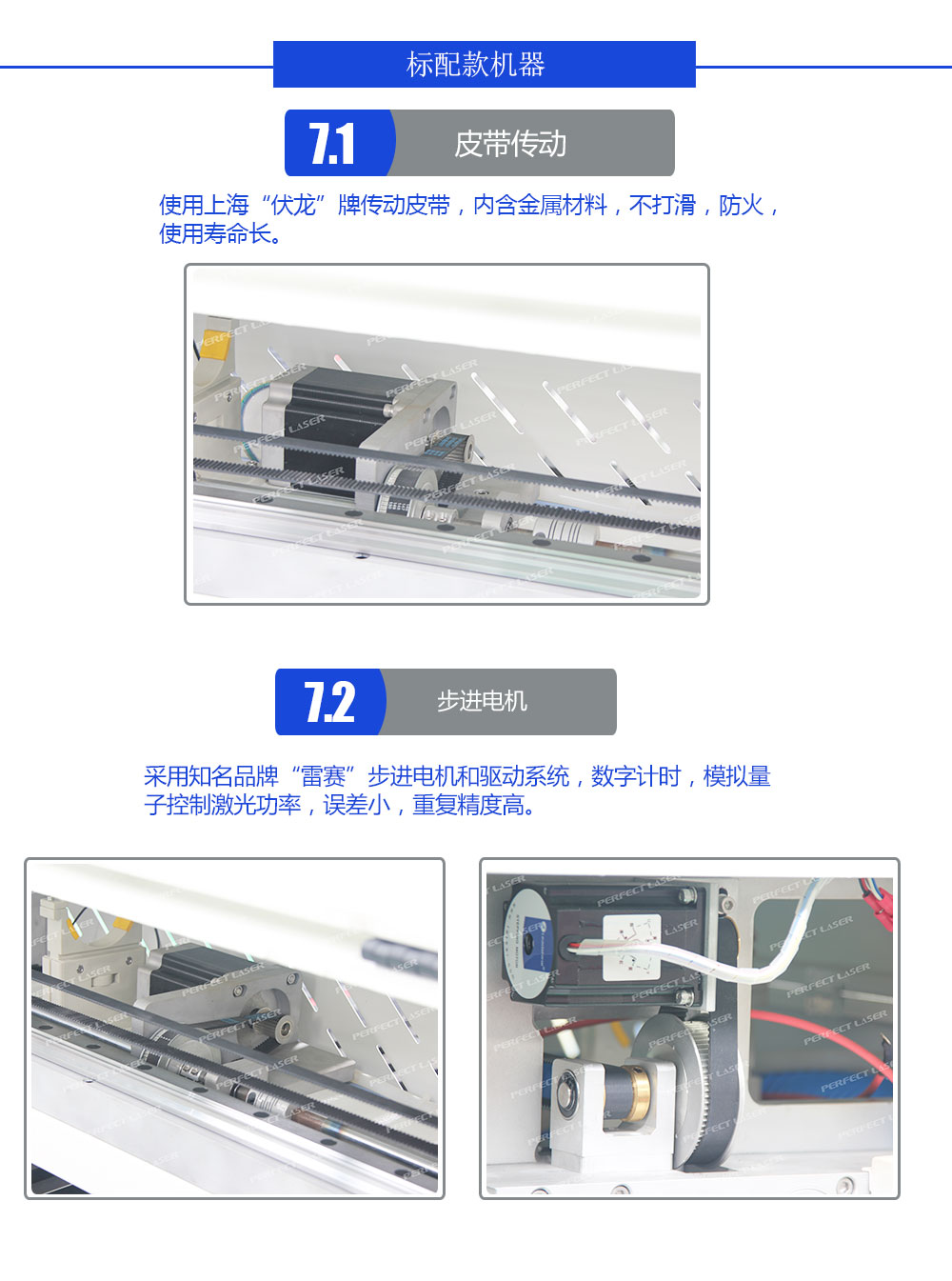 1.標準(zhǔn)機器采用皮帶傳動(dòng),及中國雷塞步進電機及驅動係統;