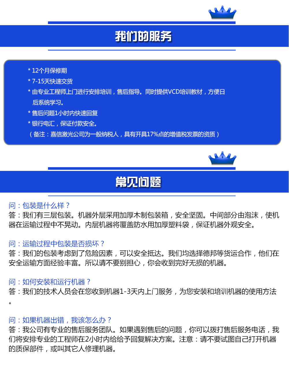 2.適(shì)合行業:禮品模型、亞克力製品、標識(shí)標牌、家具玩具、地板、廣告展示、五金刀具、廣告標牌製作、金屬工藝品(pǐn)、機械零件、儀表電(diàn)器零件(jiàn)、鋸片、彈簧片(piàn)等多種行業(yè)均可利用該金屬非金屬激光混(hún)切機