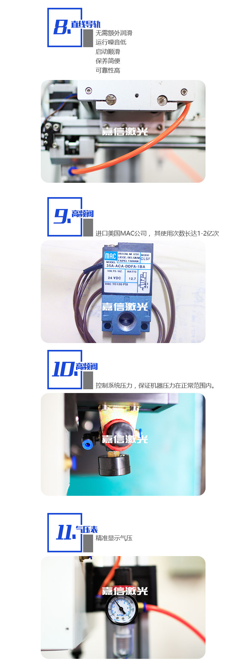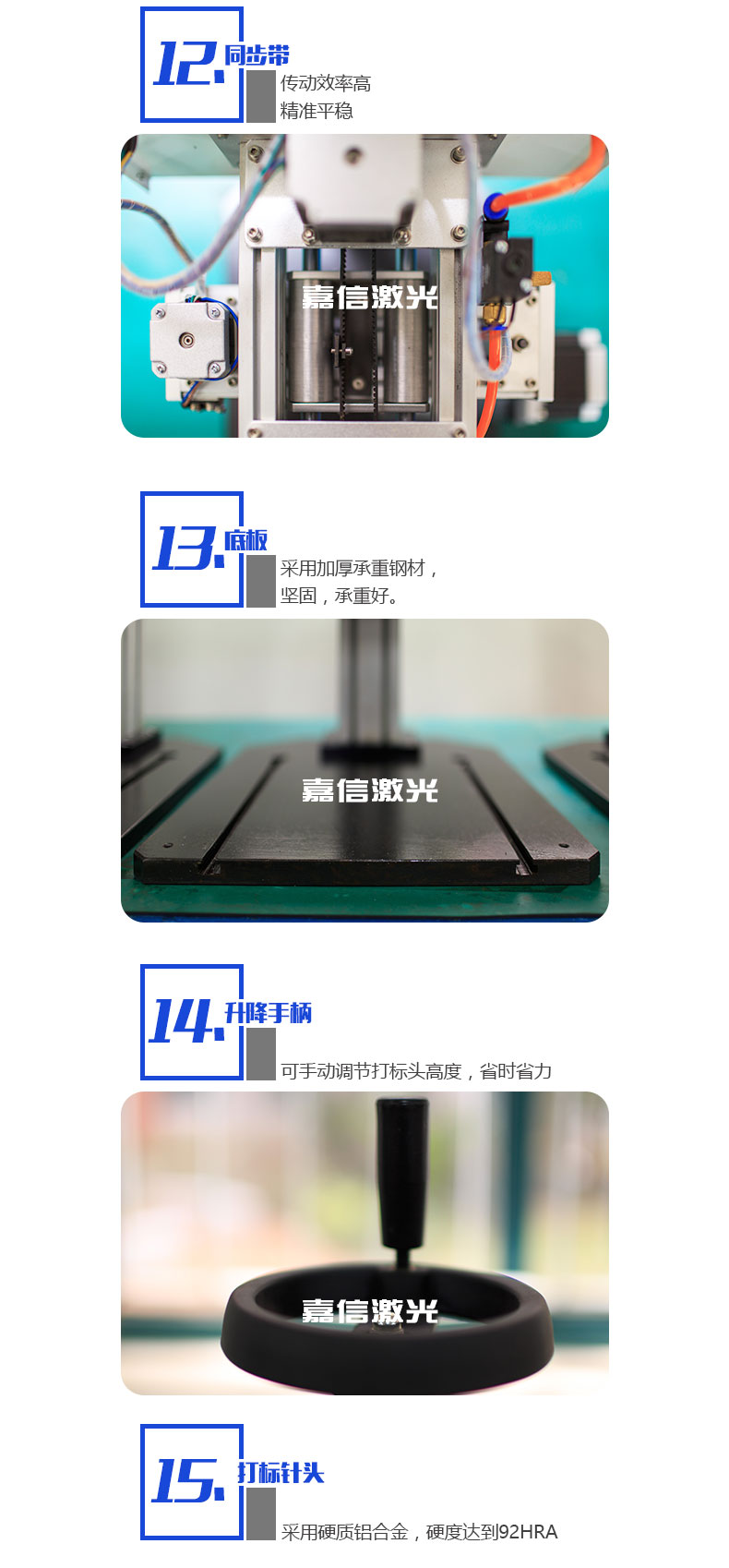 2. 高(gāo)壓鏈鋼(gāng)底座(zuò):質(zhì)量好,沉重強,對工業氣動打標機起到穩定(dìng)的(de)作用;