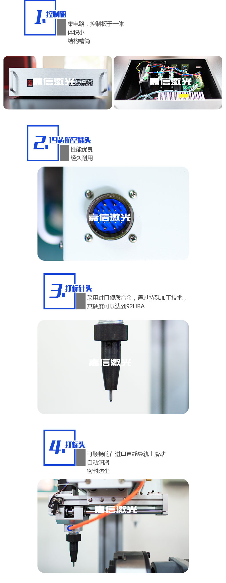 4. 硬質合金針頭:工業氣動打標機(jī)可打印大(dà)多(duō)數材質的機械零件(jiàn)和標牌;